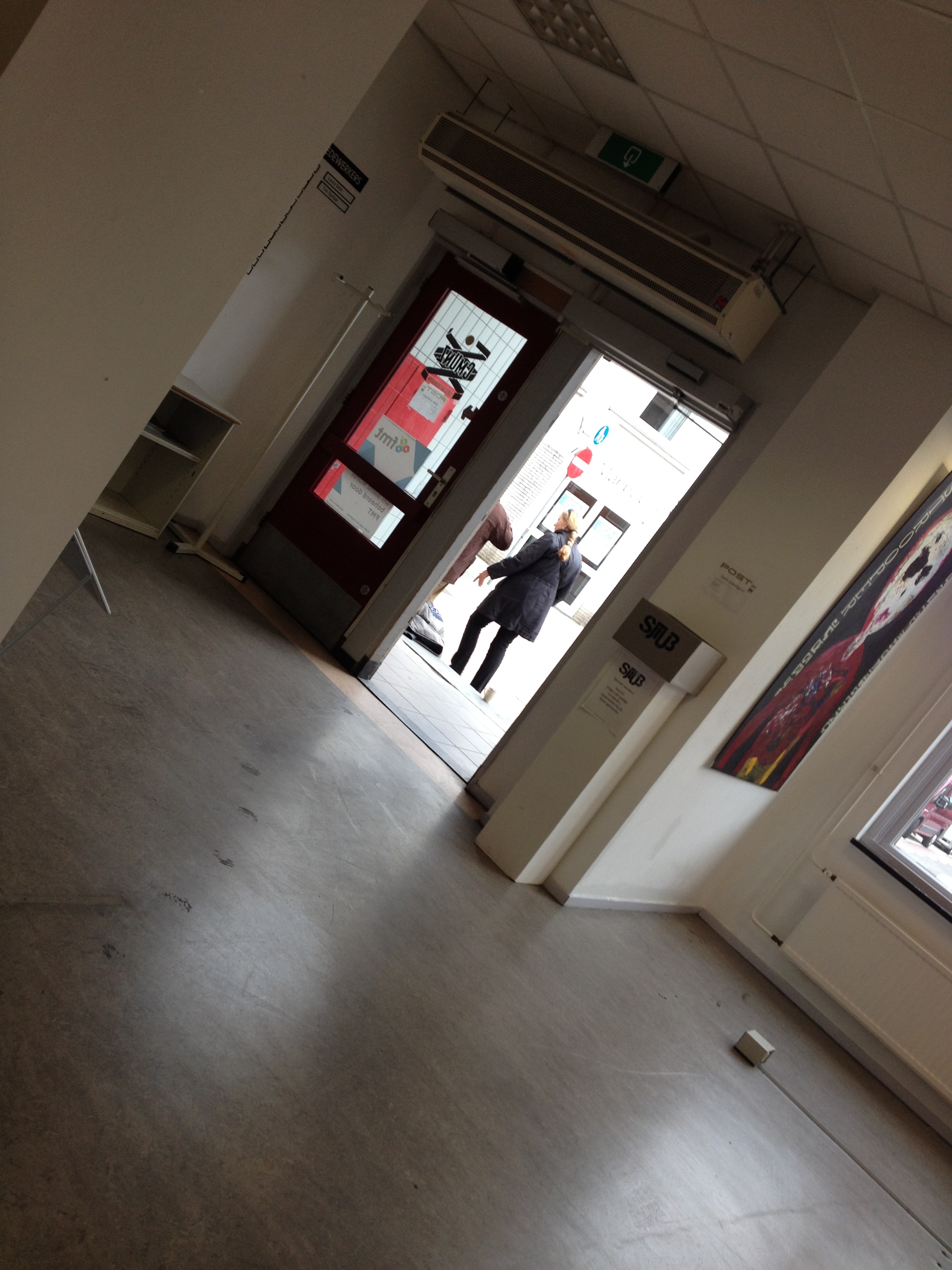 Nog snel een rondje kunst bij Post en zie hoe de plaatselijke dakloze en jas aangeboden krijgt van een vriendelijke vrouw. Ontroerend.