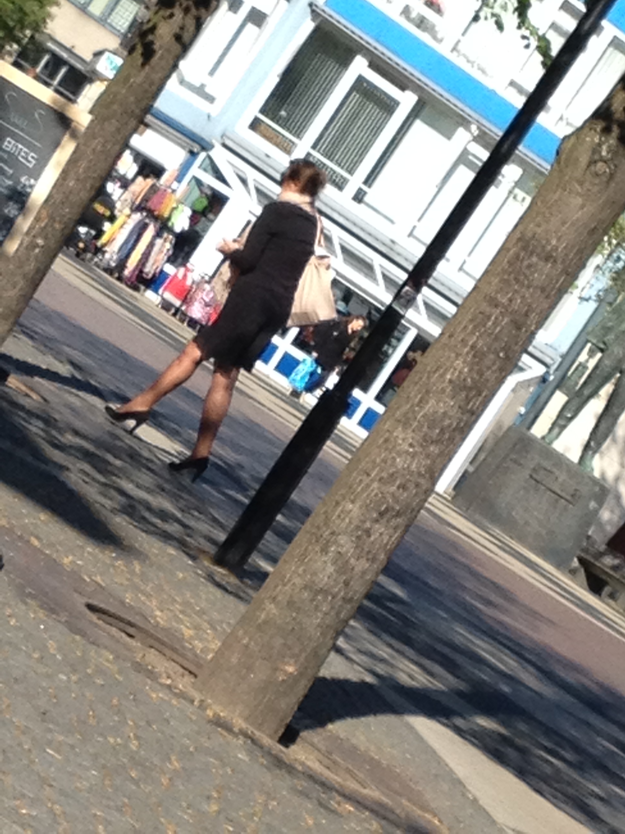 Dat meisje heeft t moeilijk. Te hoge hakken op een te hobbelige markt.