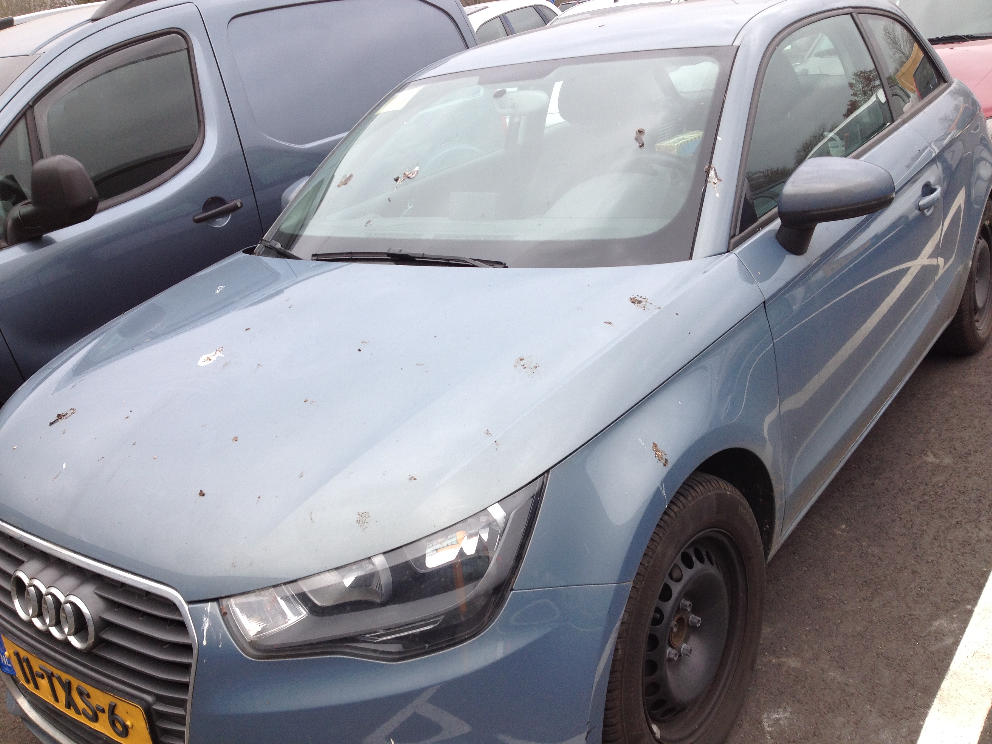 Veel te snel sta ik weer buiten. De bedrijfsauto ziet er niet uit. Wat nou hondepoep problematiek? …zullen we het eens over duiven hebben?